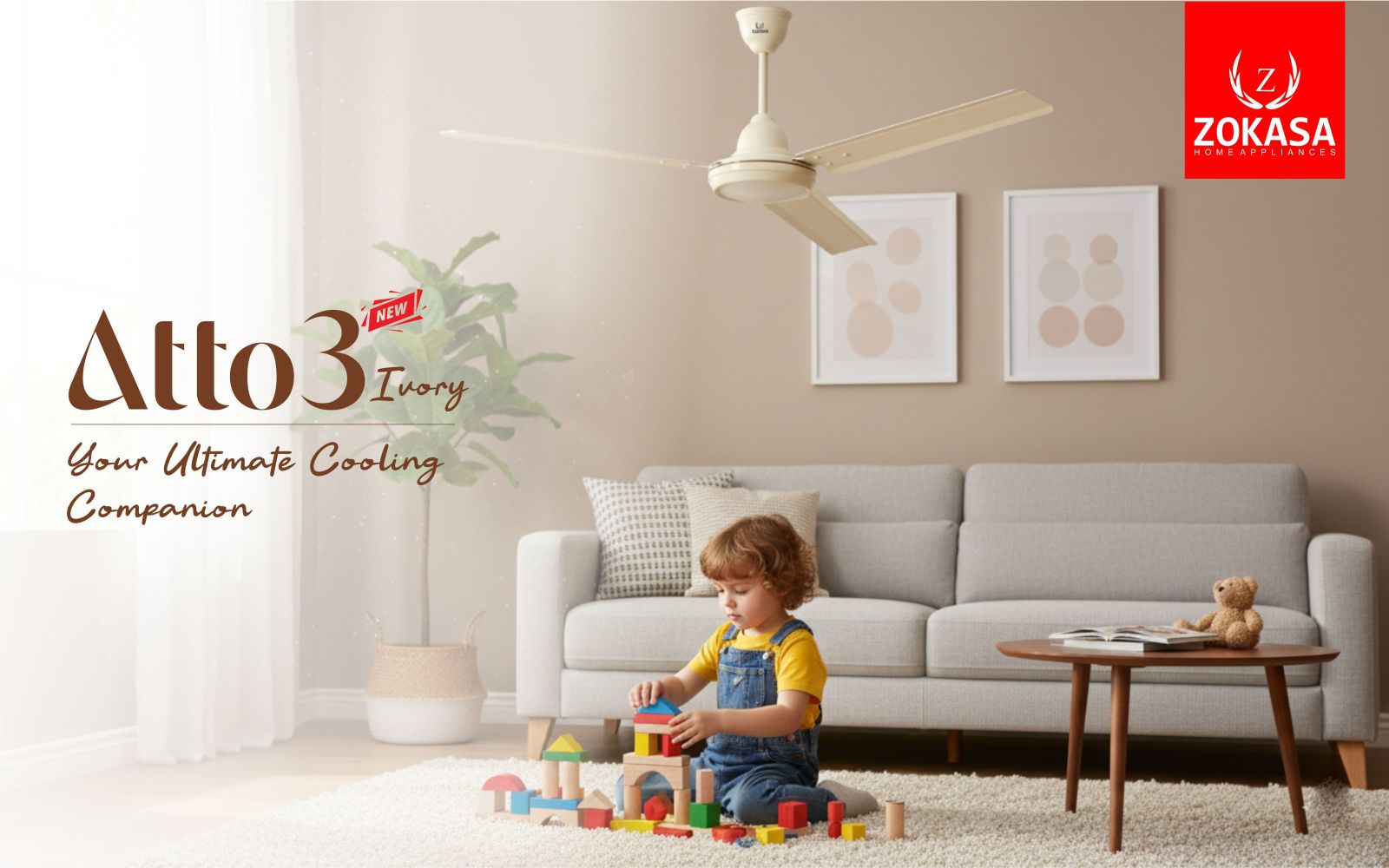 ZOKASA Atto 3 – High-Speed 48-Inch Ceiling Fan for Daily Comfort Reliable cooling for every room. Keep your home breezy and comfortable with the Atto 3. Built for durability and high-speed performance, this fan is the go-to solution for kitchens, guest rooms, and dining areas.